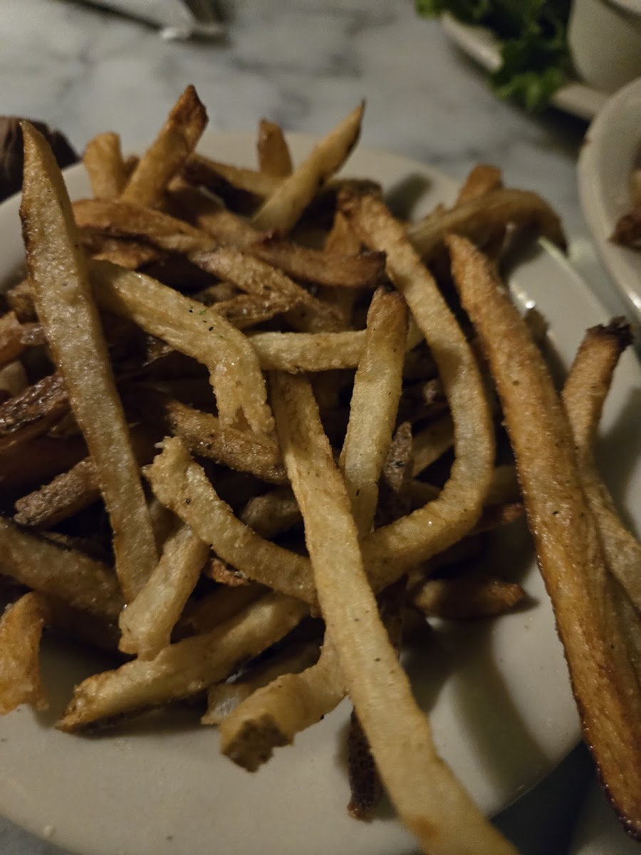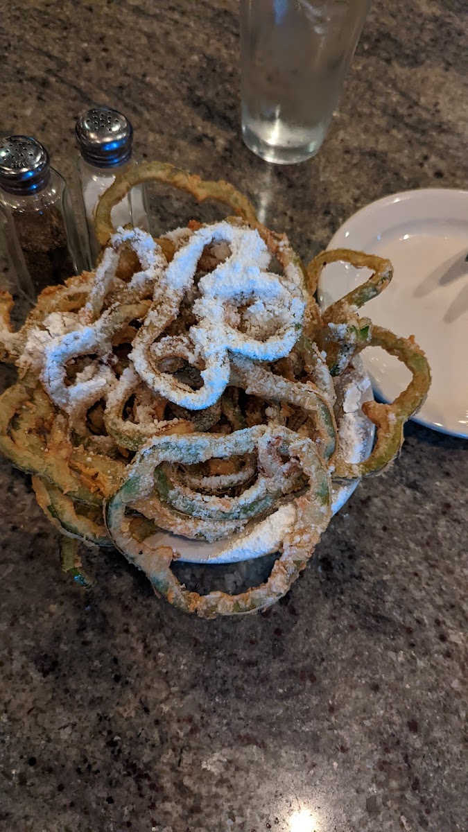 Everything on this menu is wonderful. We had the calamari appetizer as well as this fried green peppers and the onion rings and the for dinner we had the fillet was perfectly even the steak sandwich is wonderful. You can’t go wrong at this place you just gotta get there before four. We got there at 4:15. It was still 30 minute wait really really great place and good atmosphere