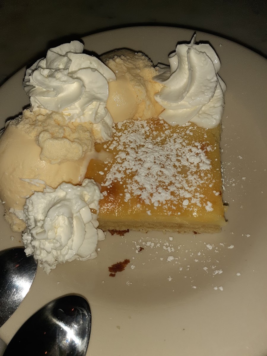 Everything was amazing! From the service to the food was a truly enjoyable experience. Parking lot was a little rough. Highly recommend the onion rings and the cheesy bread! The chocolate pudding with bourbon glaze was perfection!